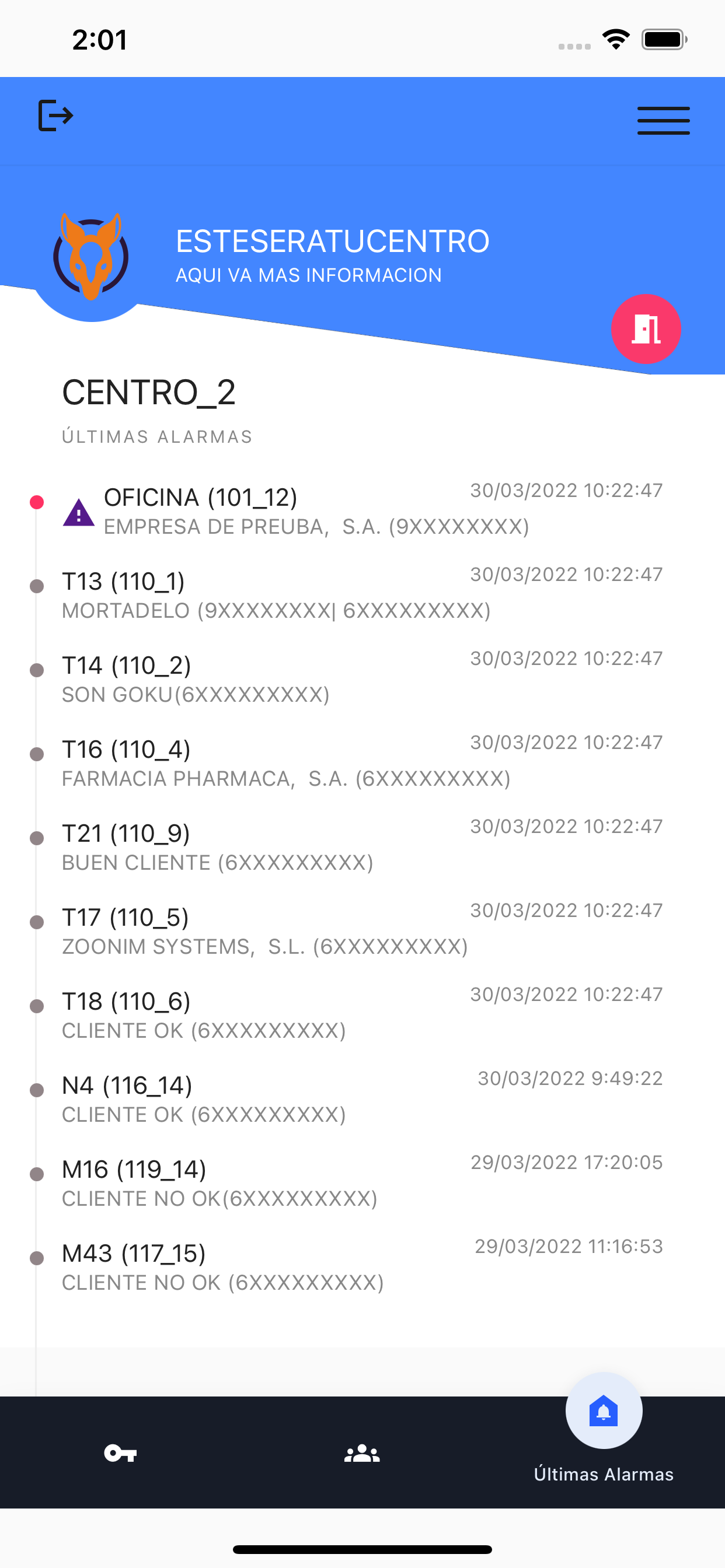 La aplicación Appmadillo te permite acceder a un registro actualizado de las últimas alarmas, brindándote una visión rápida para verificar y tomar medidas sobre las incidencias ocurridas en el centro.