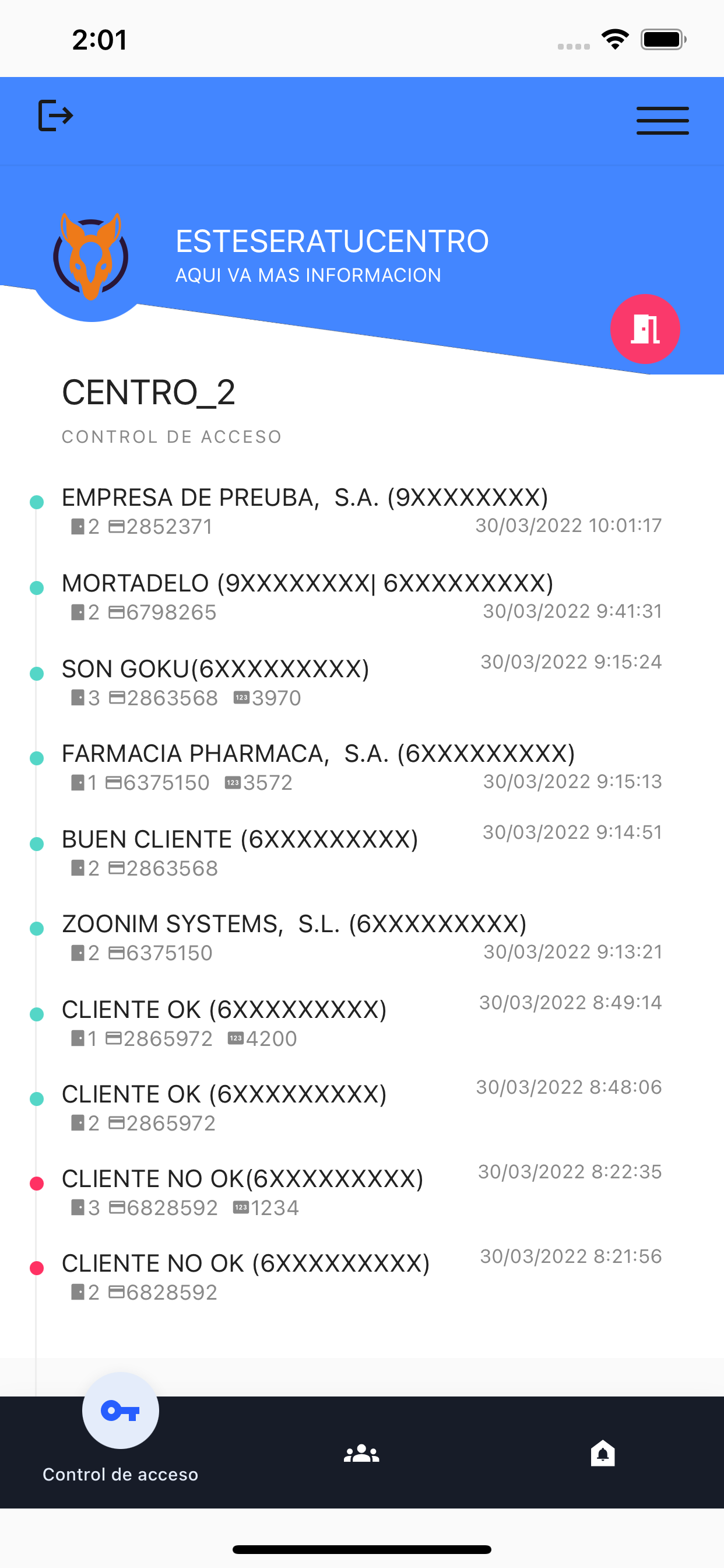 El registro de accesos recientes te proporciona una visión general de los últimos accesos realizados a la instalación, lo que te ayudará a garantizar la seguridad y el control de acceso en tu centro.